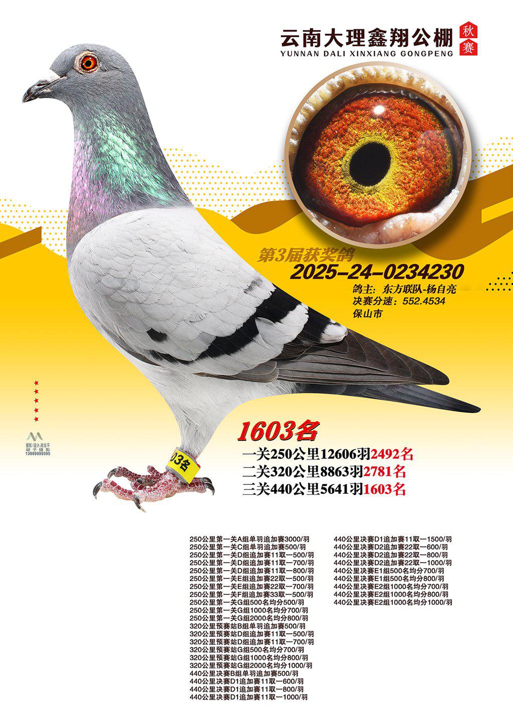 位置:云南大理鑫翔公棚2025获奖鸽展示\1603名