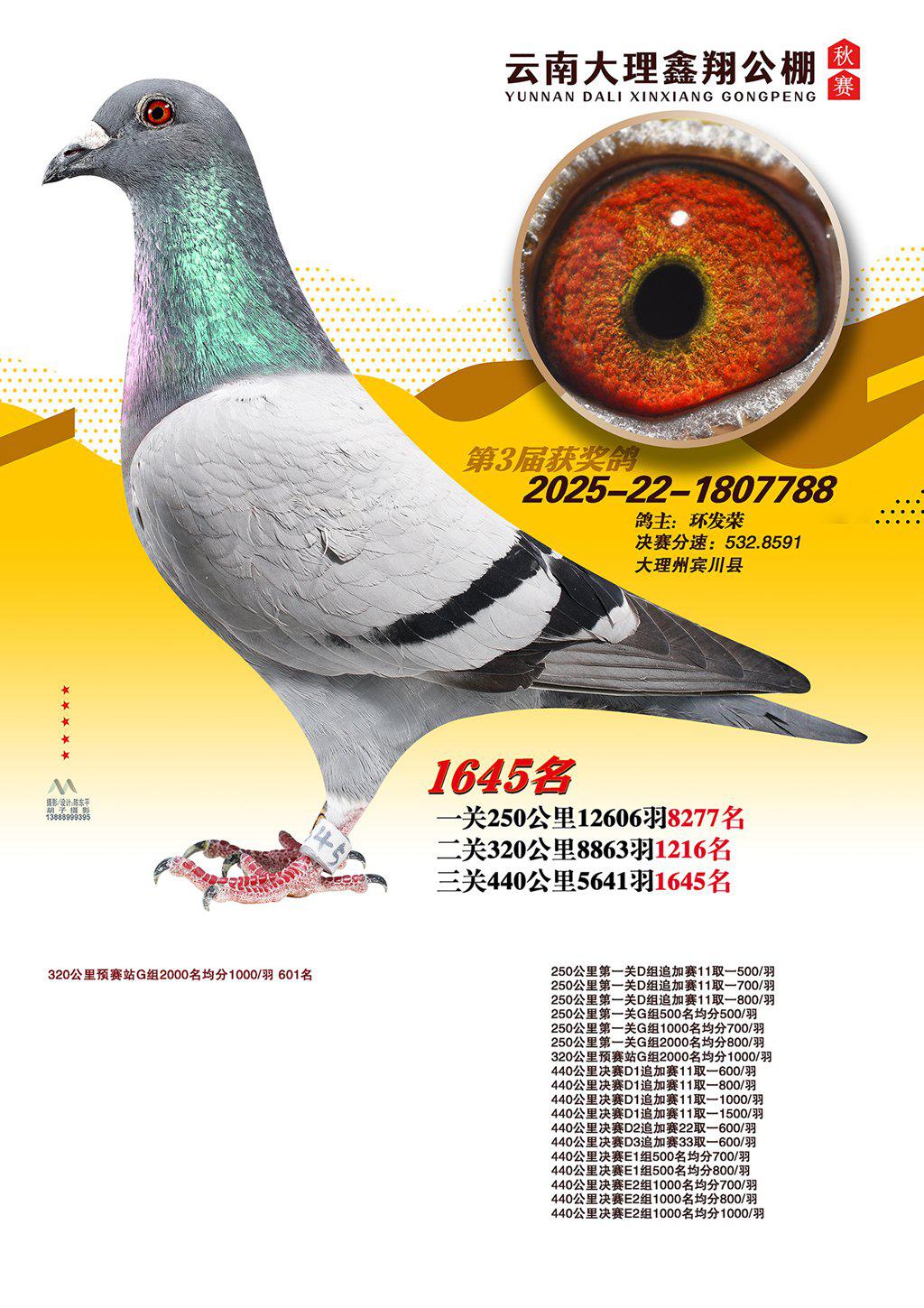 位置:云南大理鑫翔公棚2025获奖鸽展示\1645名
