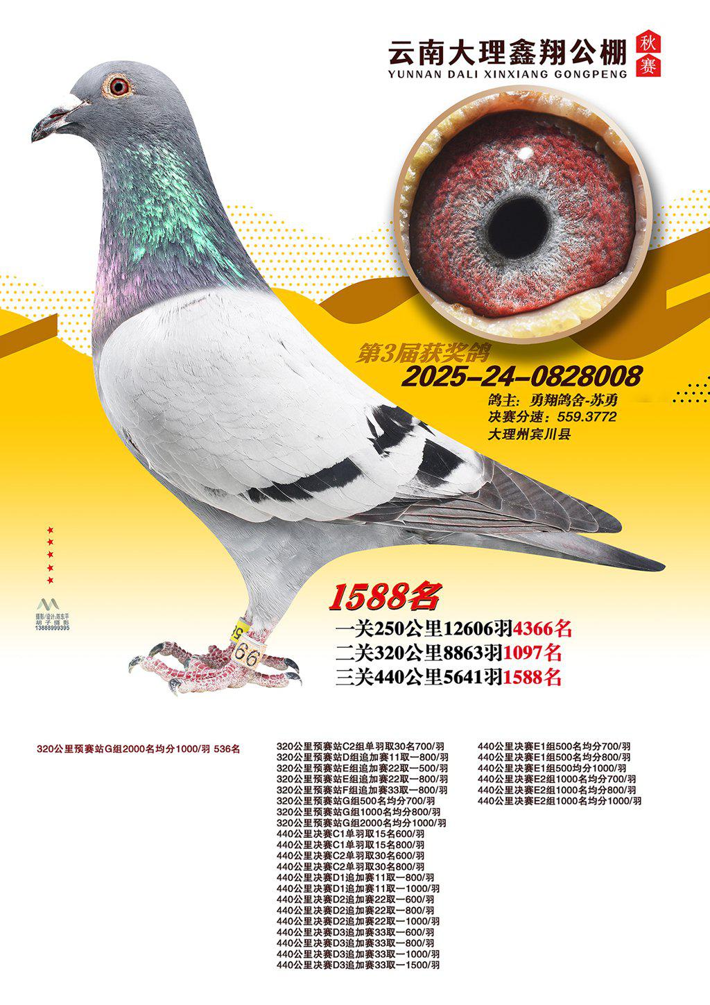 位置:云南大理鑫翔公棚2025获奖鸽展示\1588名