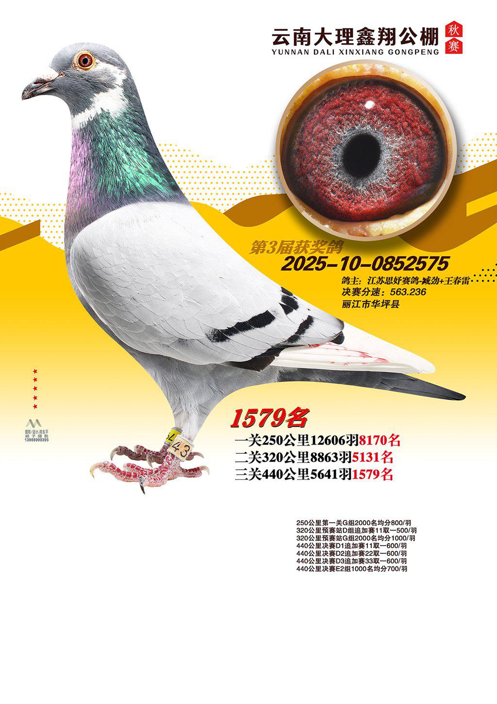 位置:云南大理鑫翔公棚2025获奖鸽展示\1579名