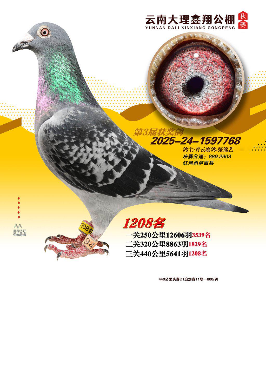 位置:云南大理鑫翔公棚2025获奖鸽展示\1208名