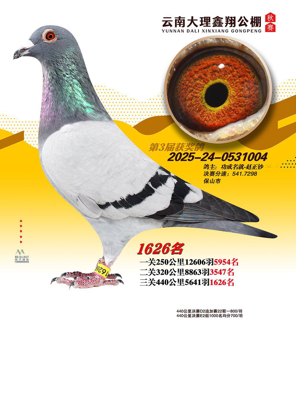 位置:云南大理鑫翔公棚2025获奖鸽展示\1626名