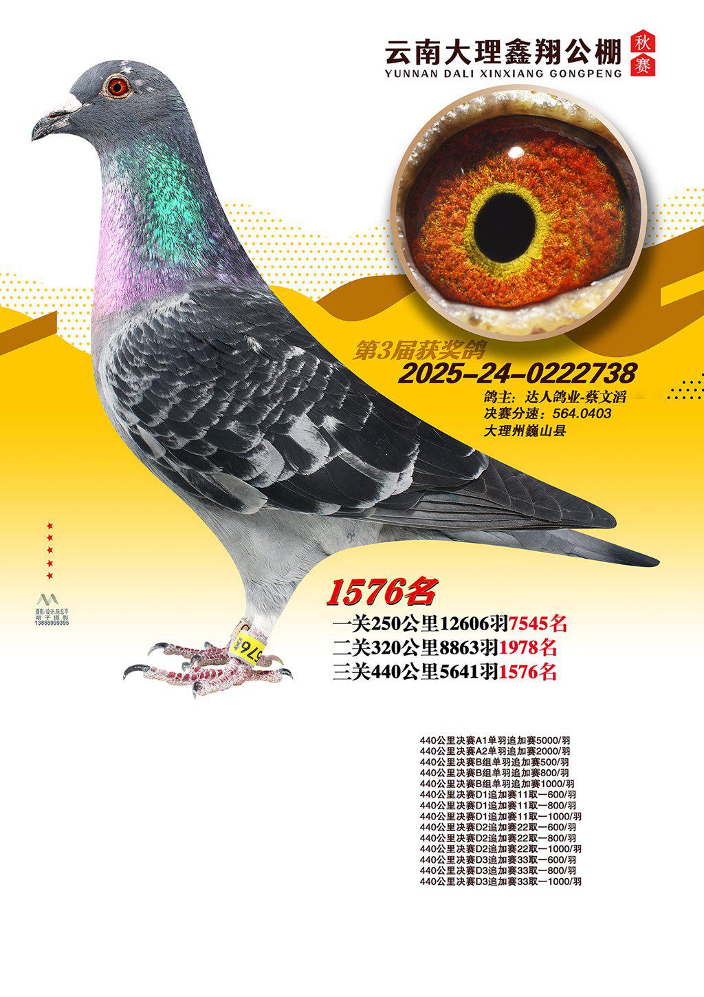 位置:云南大理鑫翔公棚2025获奖鸽展示\1576名