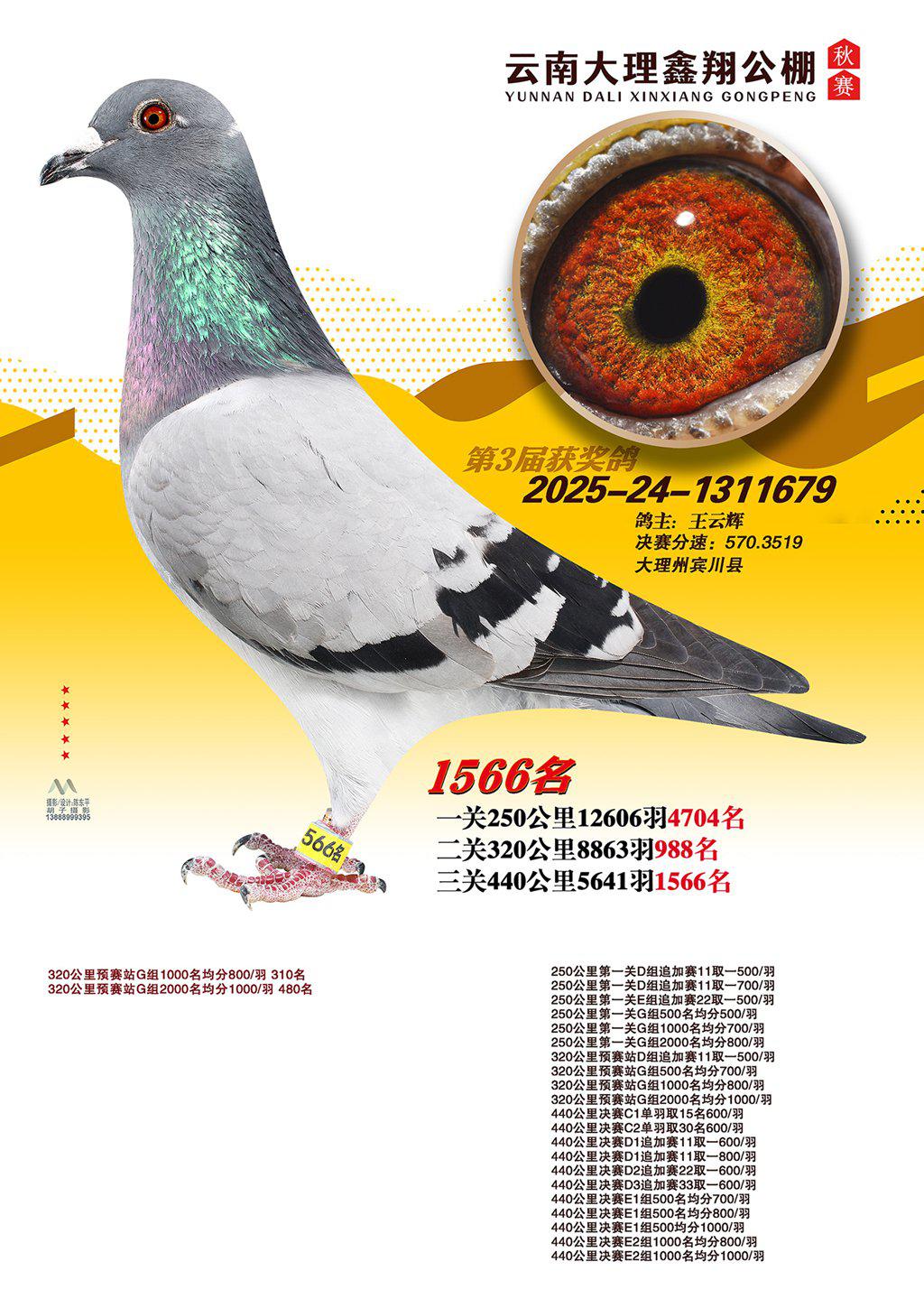 位置:云南大理鑫翔公棚2025获奖鸽展示\1566名