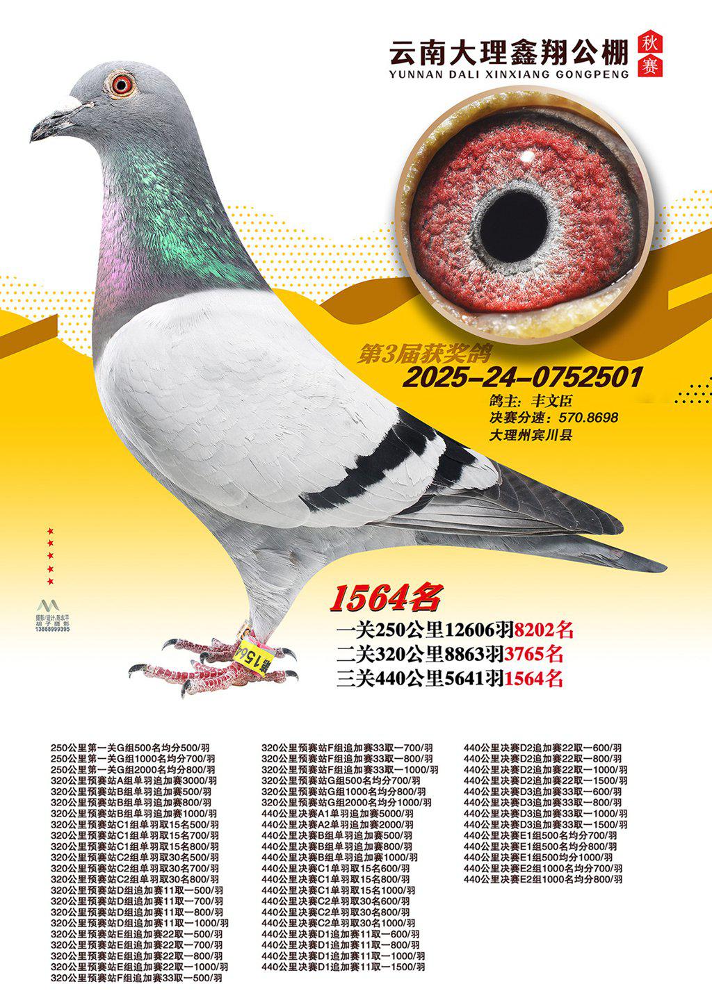 位置:云南大理鑫翔公棚2025获奖鸽展示\1564名