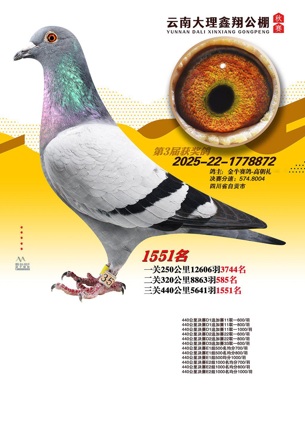 位置:云南大理鑫翔公棚2025获奖鸽展示\1551名