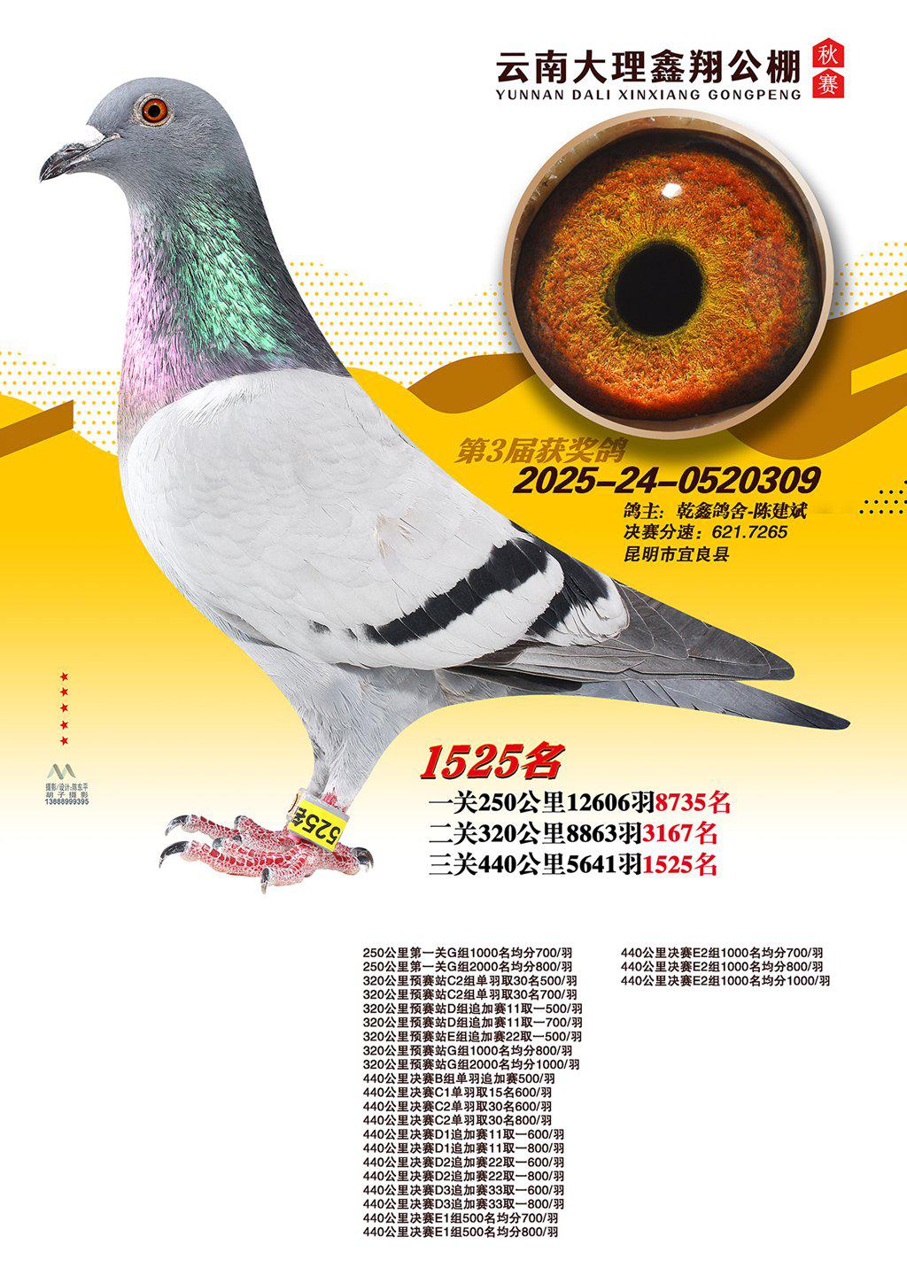 位置:云南大理鑫翔公棚2025获奖鸽展示\1525名