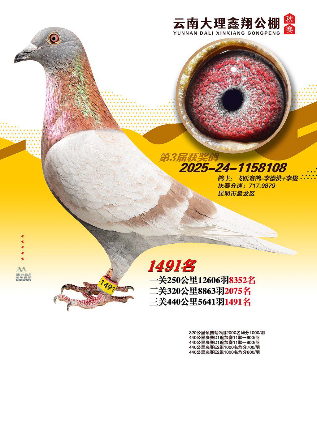 位置:云南大理鑫翔公棚2025获奖鸽展示\1491名