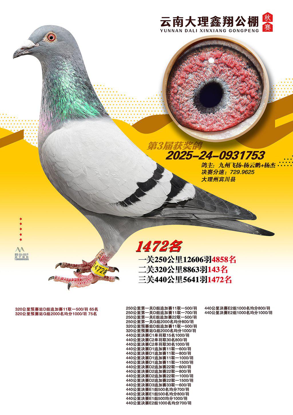位置:云南大理鑫翔公棚2025获奖鸽展示\1472名