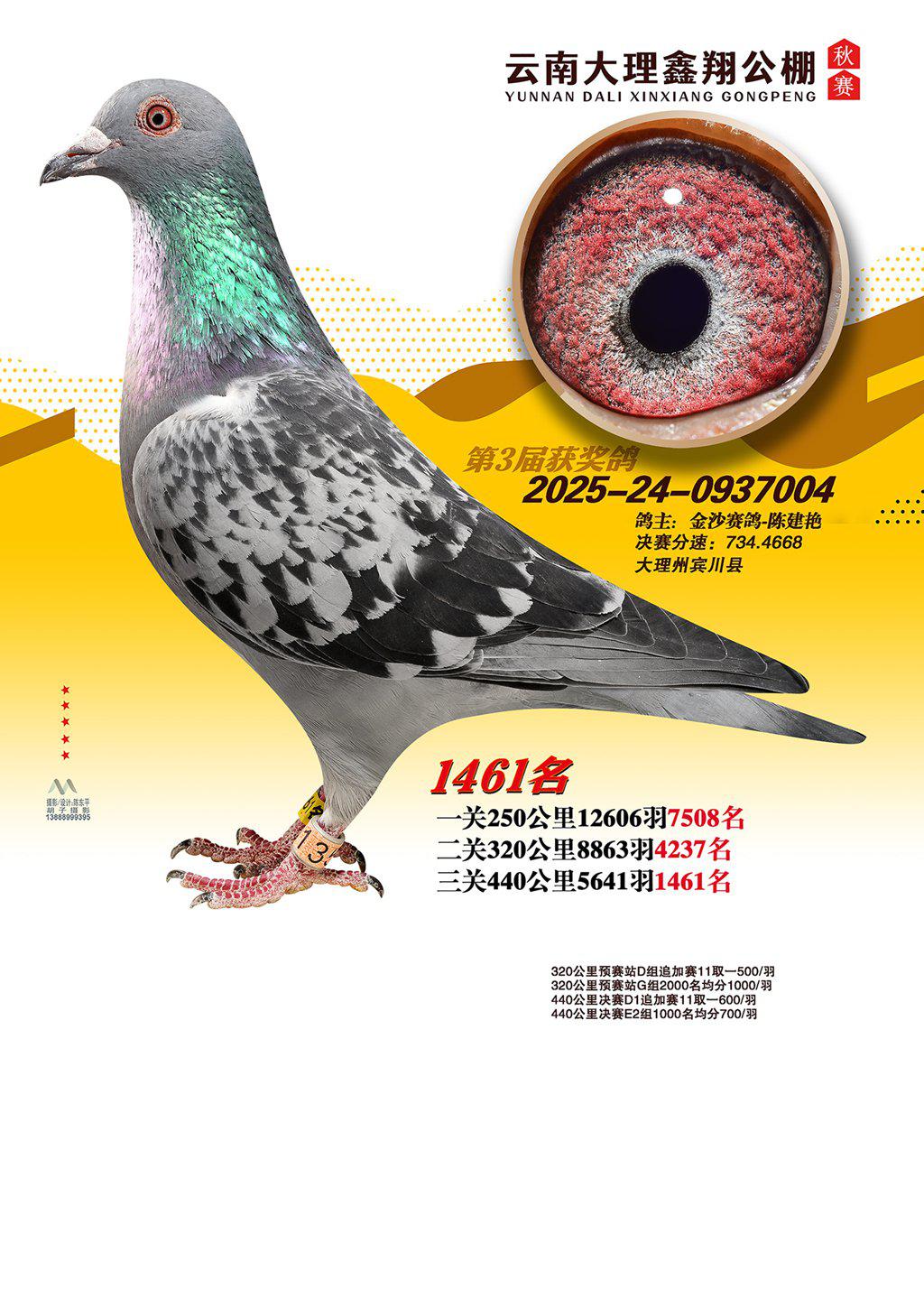 位置:云南大理鑫翔公棚2025获奖鸽展示\1461名