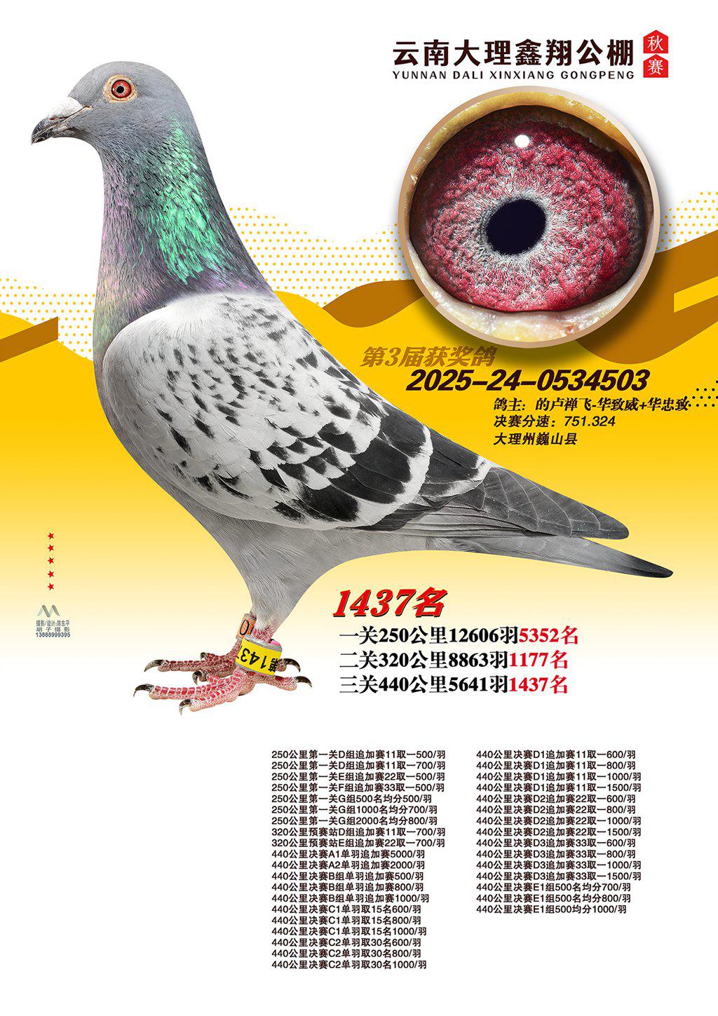 位置:云南大理鑫翔公棚2025获奖鸽展示\1437名