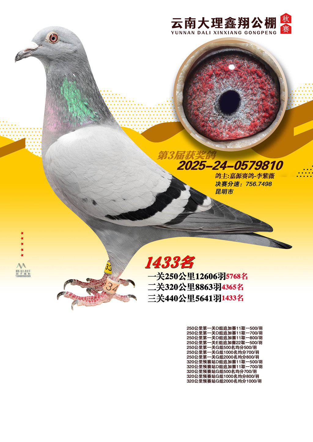 位置:云南大理鑫翔公棚2025获奖鸽展示\1433名
