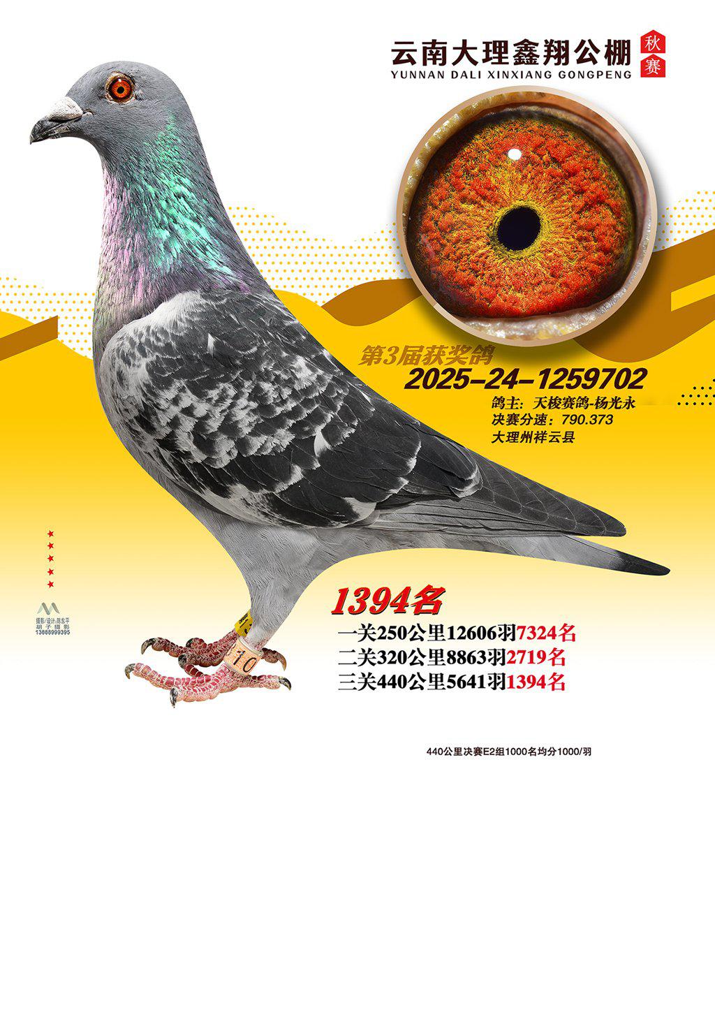 位置:云南大理鑫翔公棚2025获奖鸽展示\1394名