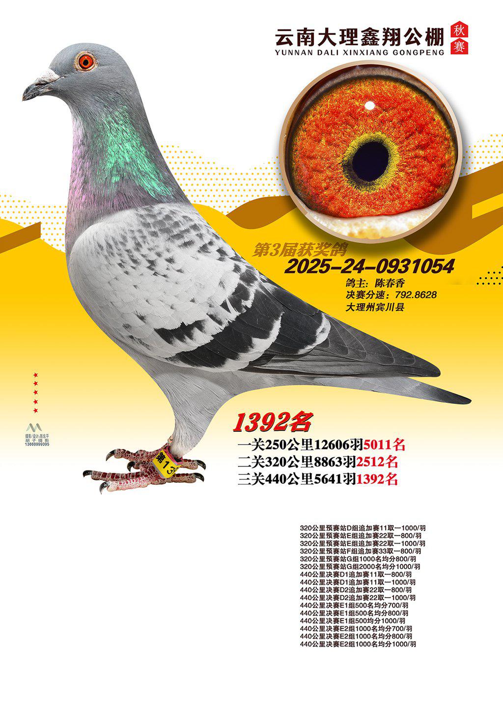 位置:云南大理鑫翔公棚2025获奖鸽展示\1392名