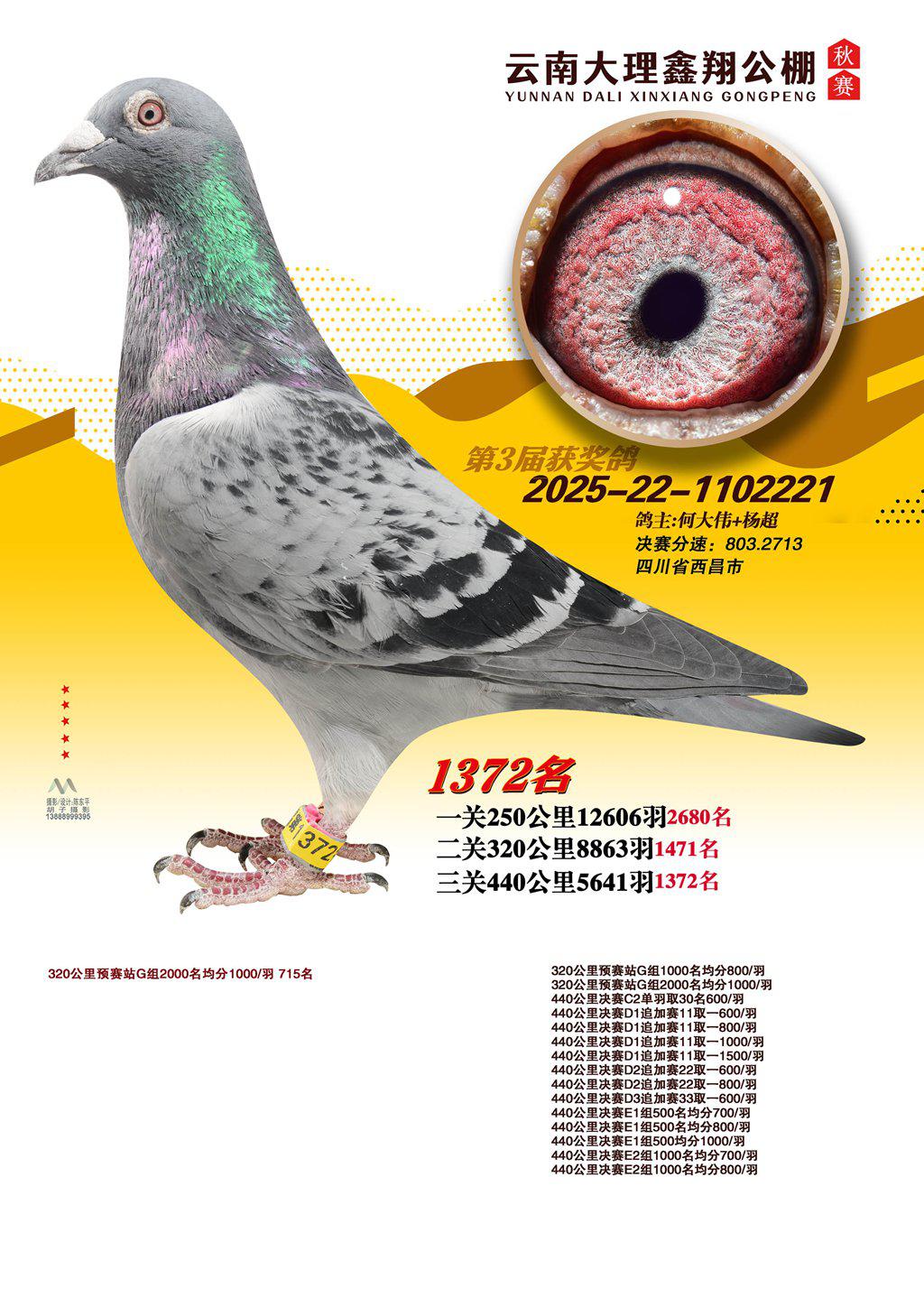 位置:云南大理鑫翔公棚2025获奖鸽展示\1372名