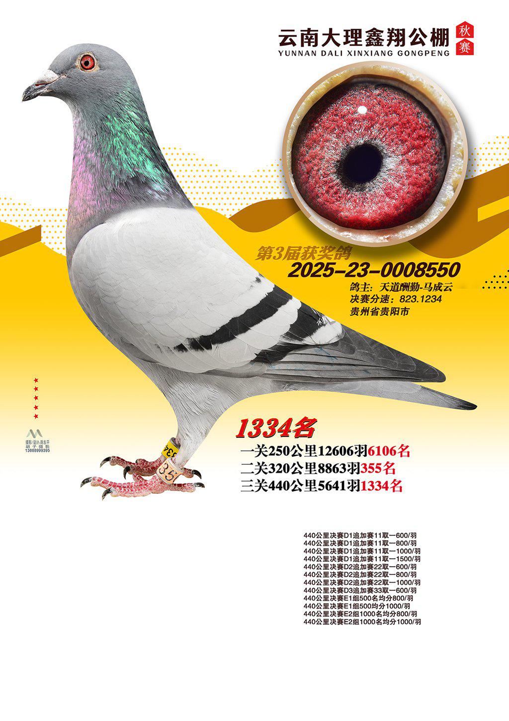位置:云南大理鑫翔公棚2025获奖鸽展示\1334名