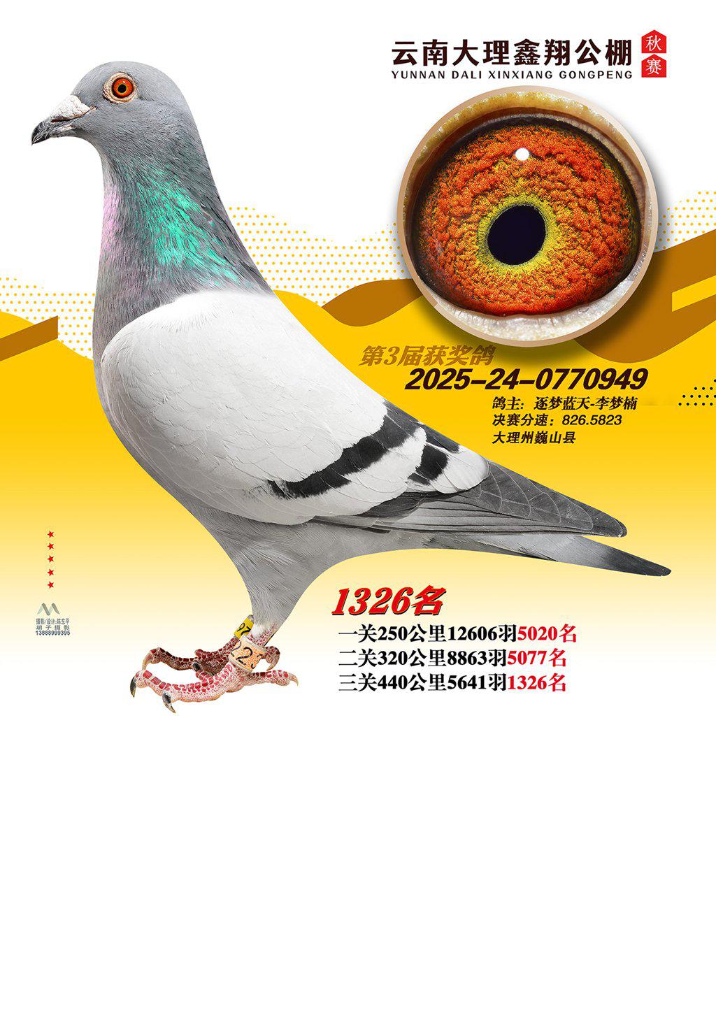 位置:云南大理鑫翔公棚2025获奖鸽展示\1326名