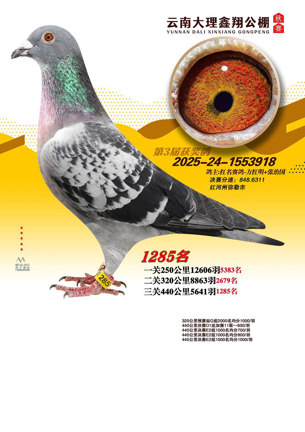 位置:云南大理鑫翔公棚2025获奖鸽展示\1285名