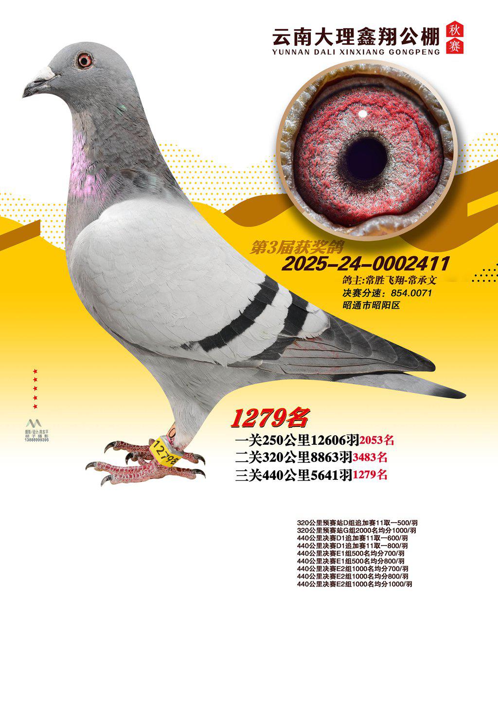 位置:云南大理鑫翔公棚2025获奖鸽展示\1279名