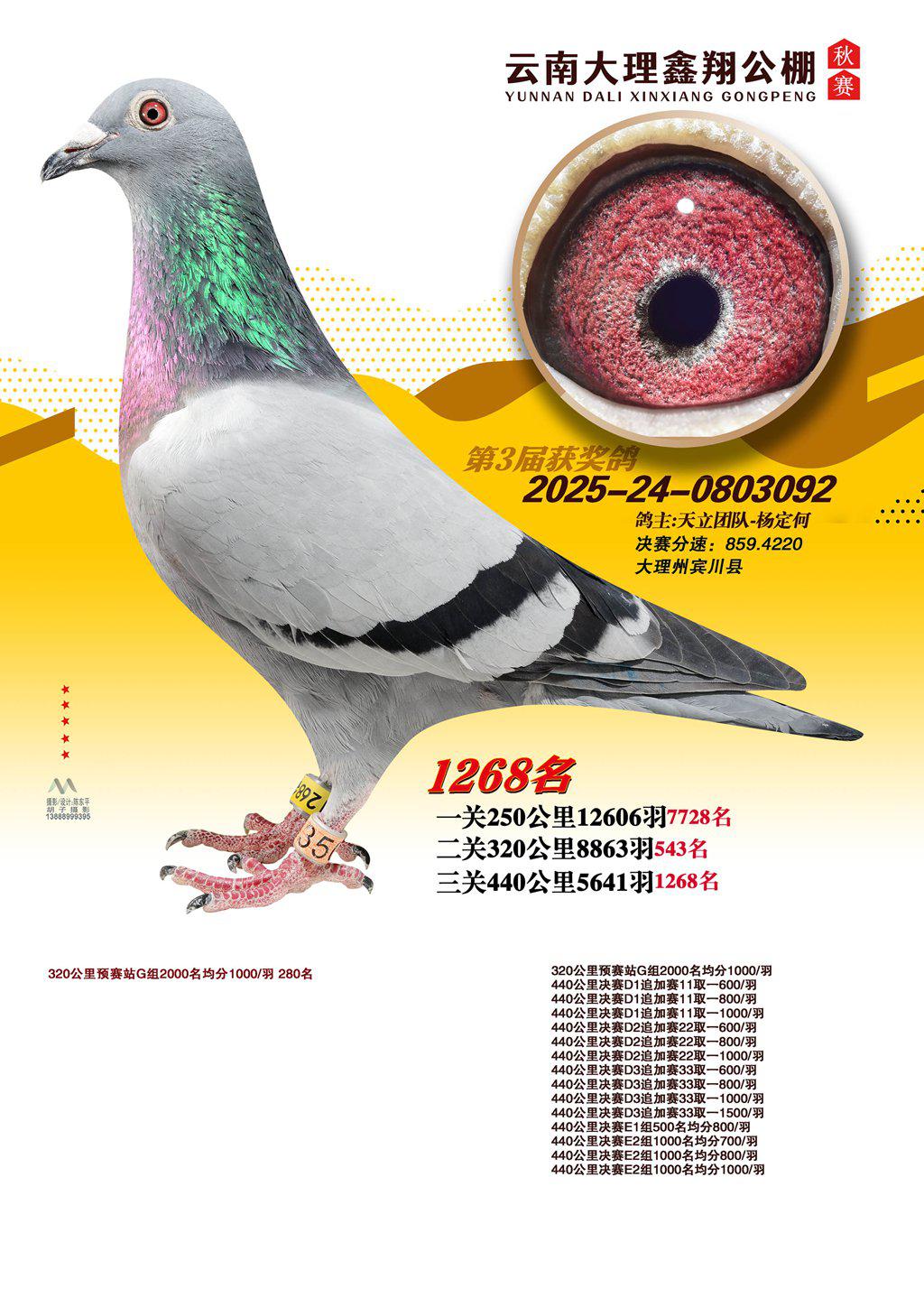 位置:云南大理鑫翔公棚2025获奖鸽展示\1268名