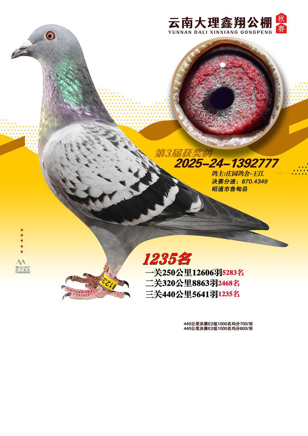位置:云南大理鑫翔公棚2025获奖鸽展示\1235名