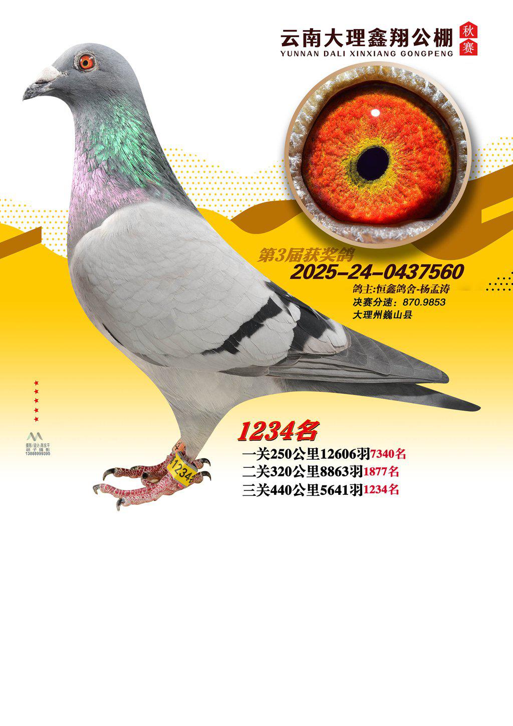 位置:云南大理鑫翔公棚2025获奖鸽展示\1234名