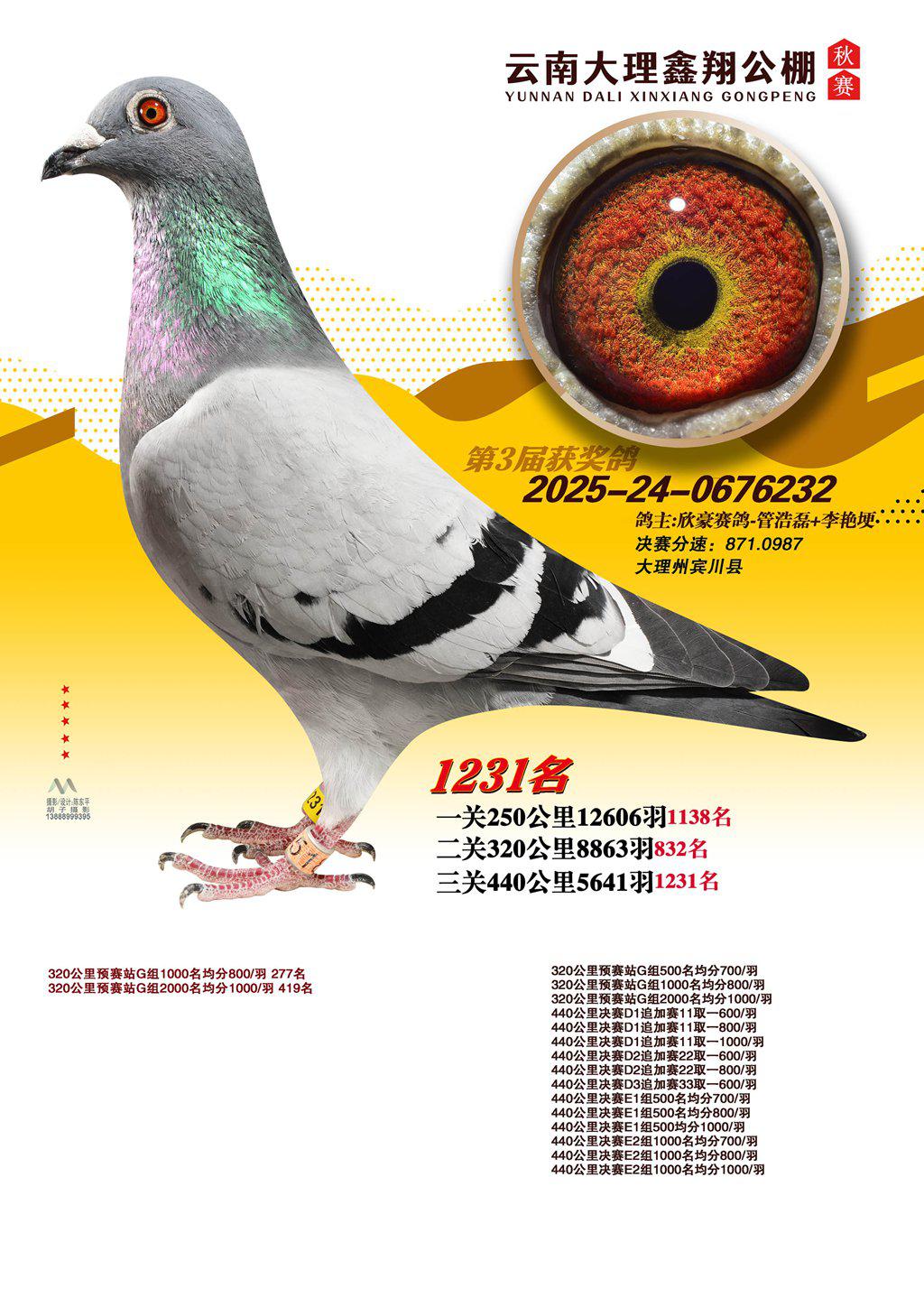 位置:云南大理鑫翔公棚2025获奖鸽展示\1231名