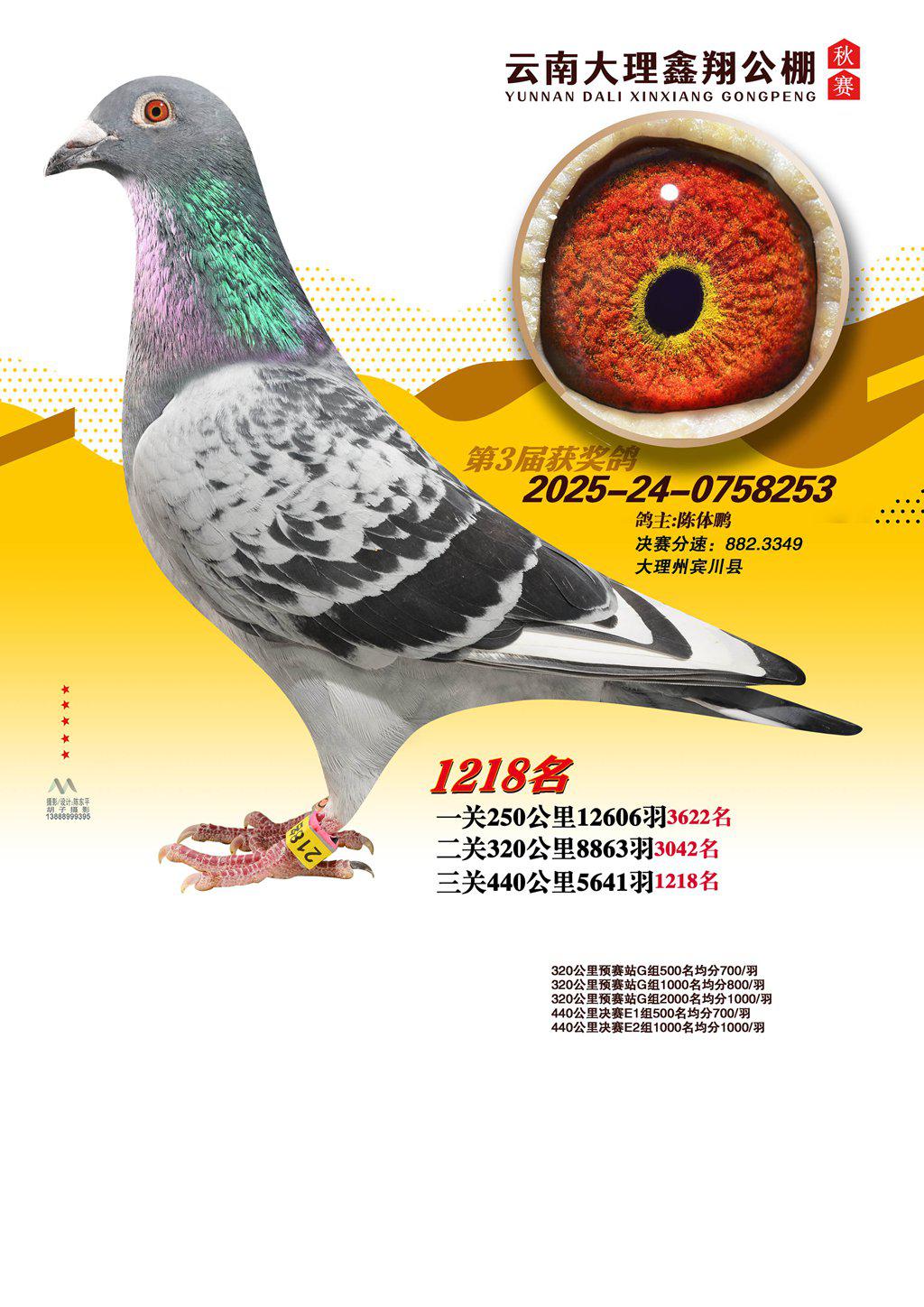 位置:云南大理鑫翔公棚2025获奖鸽展示\1218名