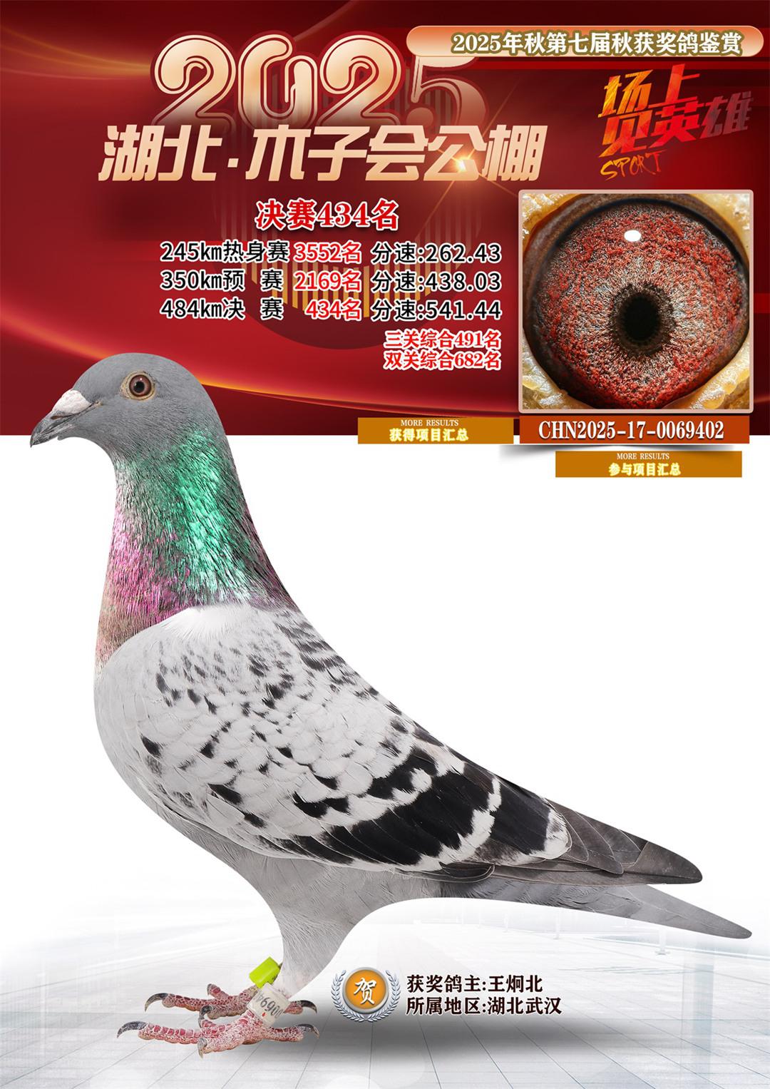 位置:湖北省木子会公棚2025获奖鸽展示\决赛434名