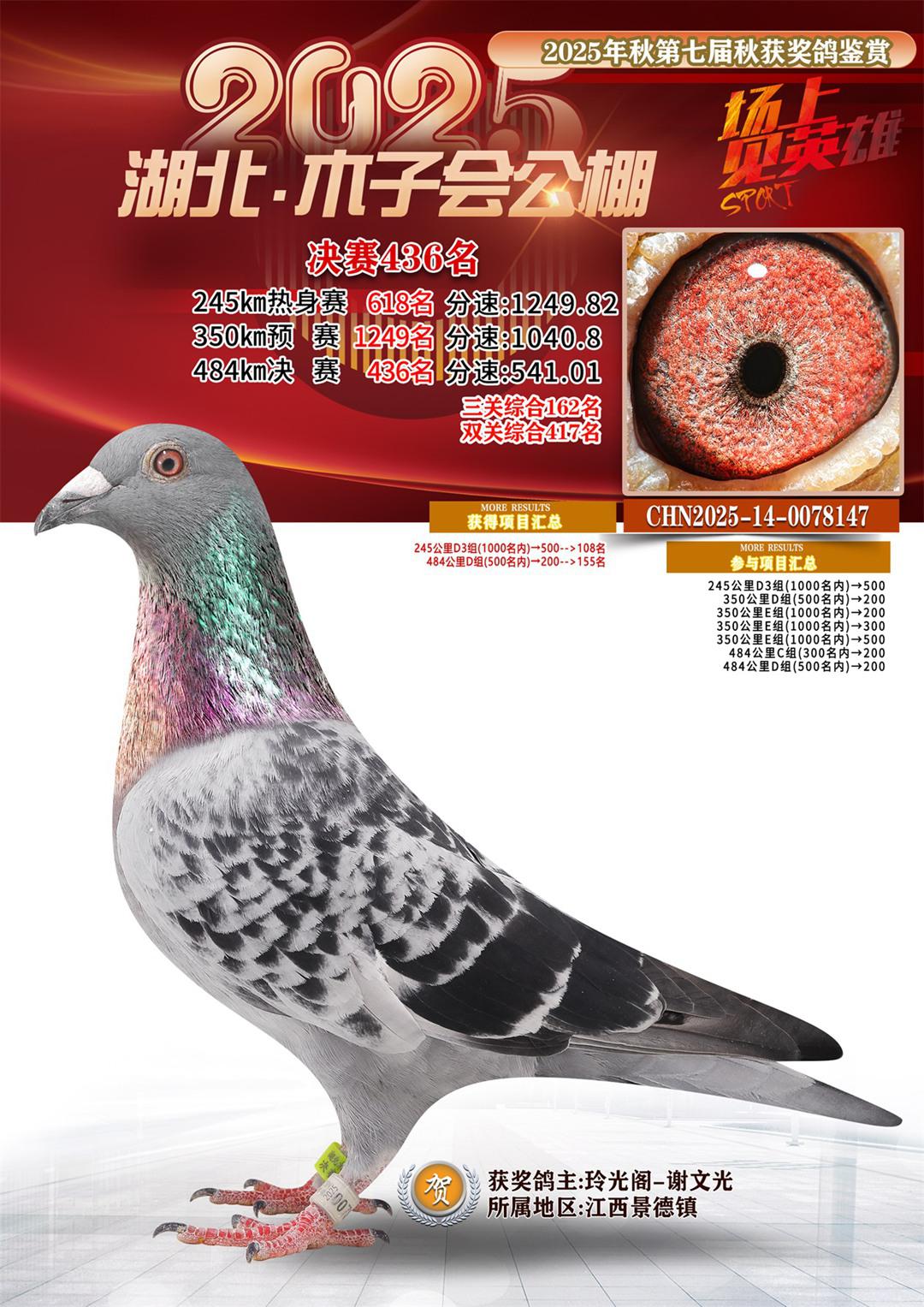 位置:湖北省木子会公棚2025获奖鸽展示\决赛436名