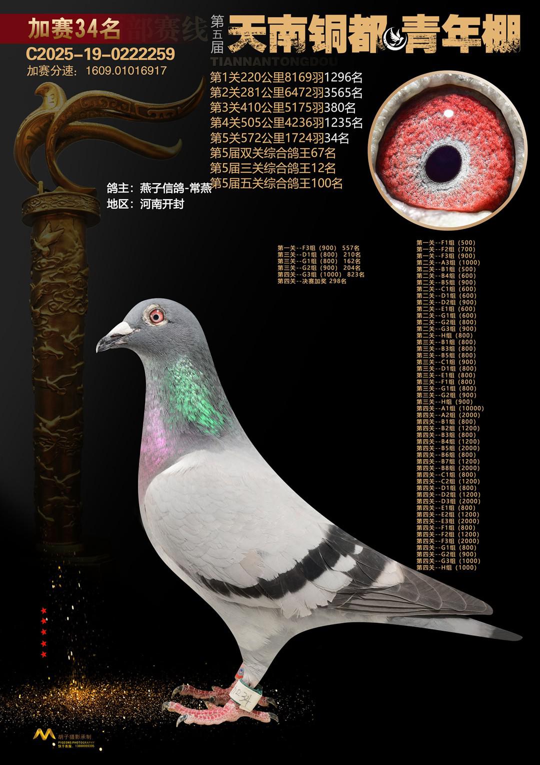 位置:天南铜都青年棚2025获奖鸽展示\34名