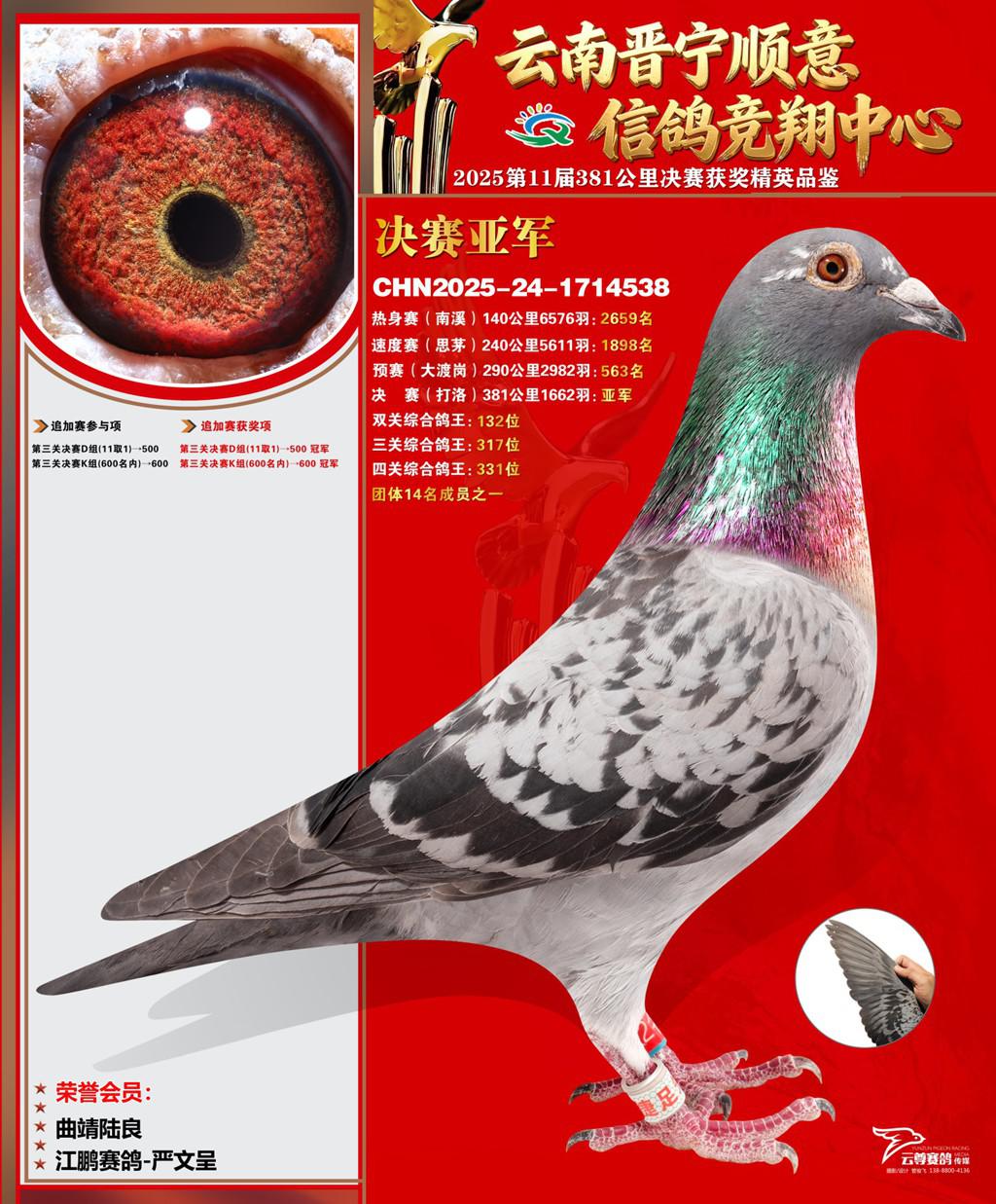 位置:云南晋宁顺意信鸽竞翔中心2025获奖鸽展示\决赛2名