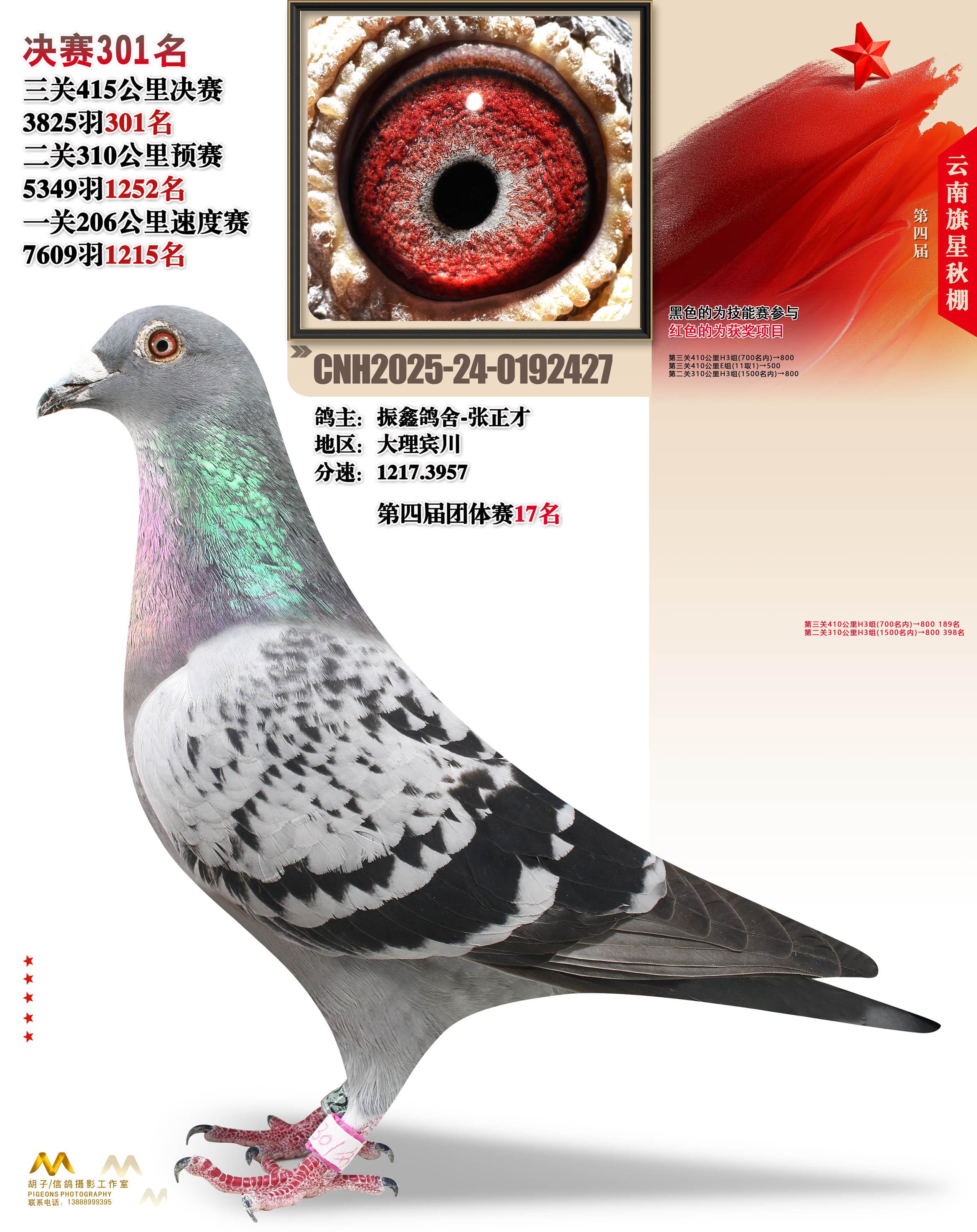 位置:云南大理旗星赛鸽中心2025获奖鸽展示\决赛301名