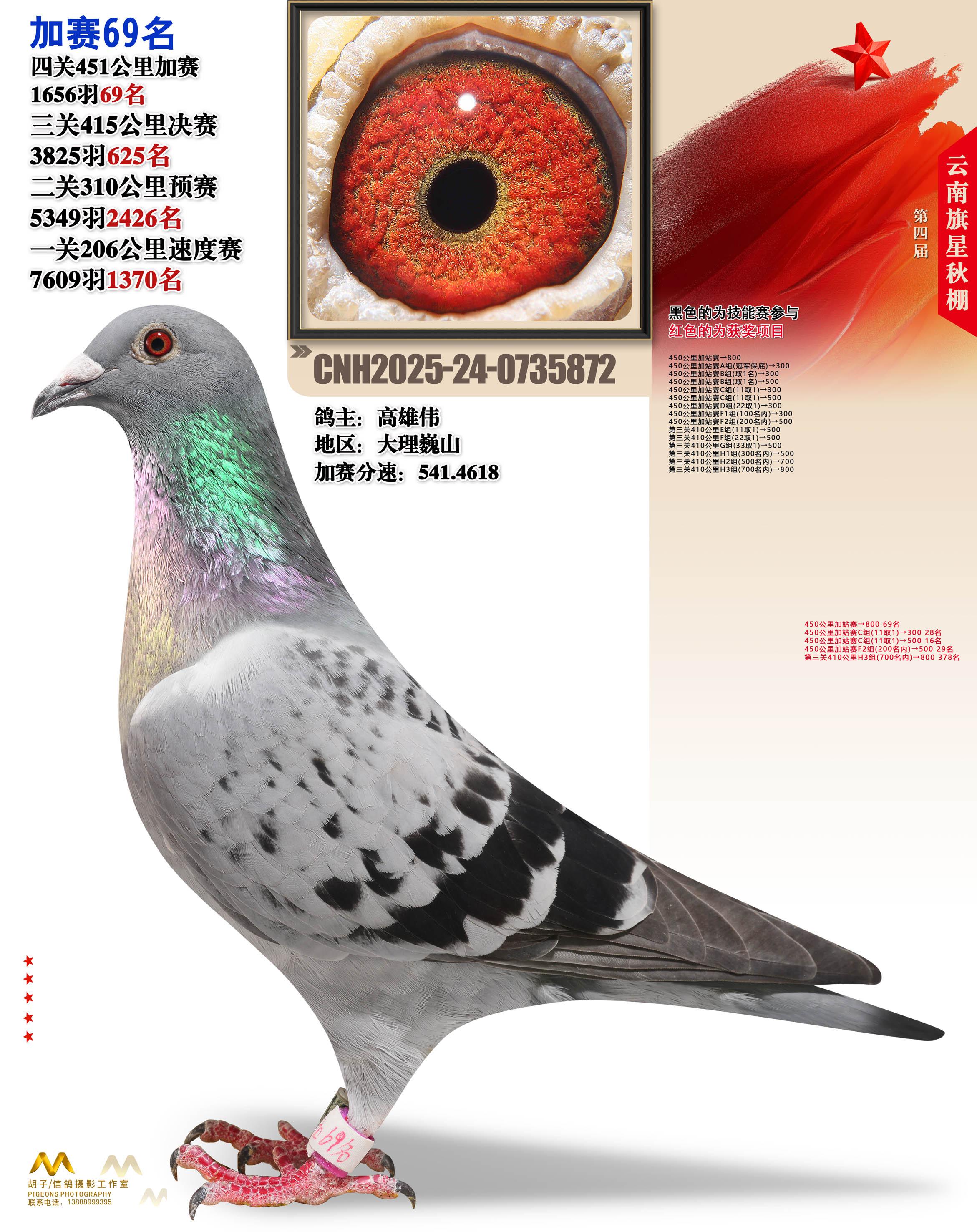 位置:云南大理旗星赛鸽中心2025获奖鸽展示\加站赛69名