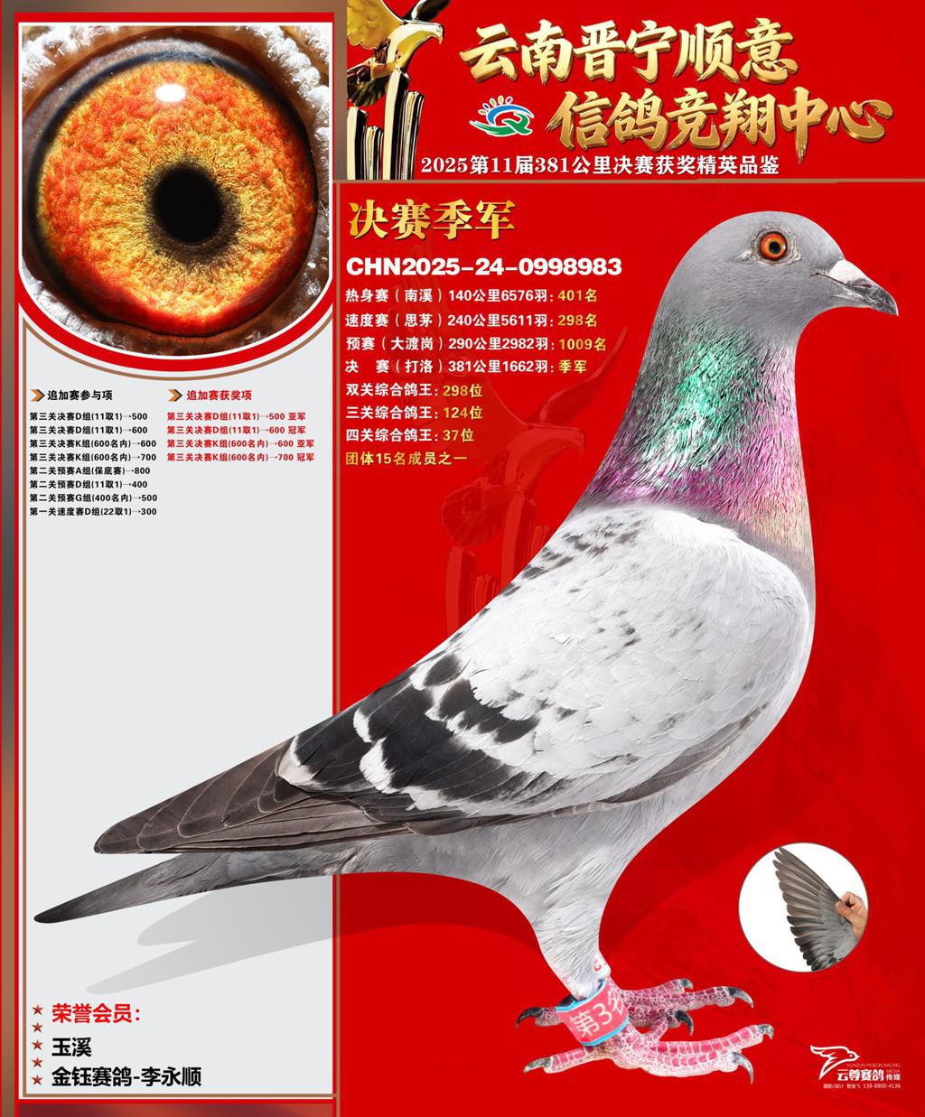 位置:云南晋宁顺意信鸽竞翔中心2025获奖鸽展示\决赛3名