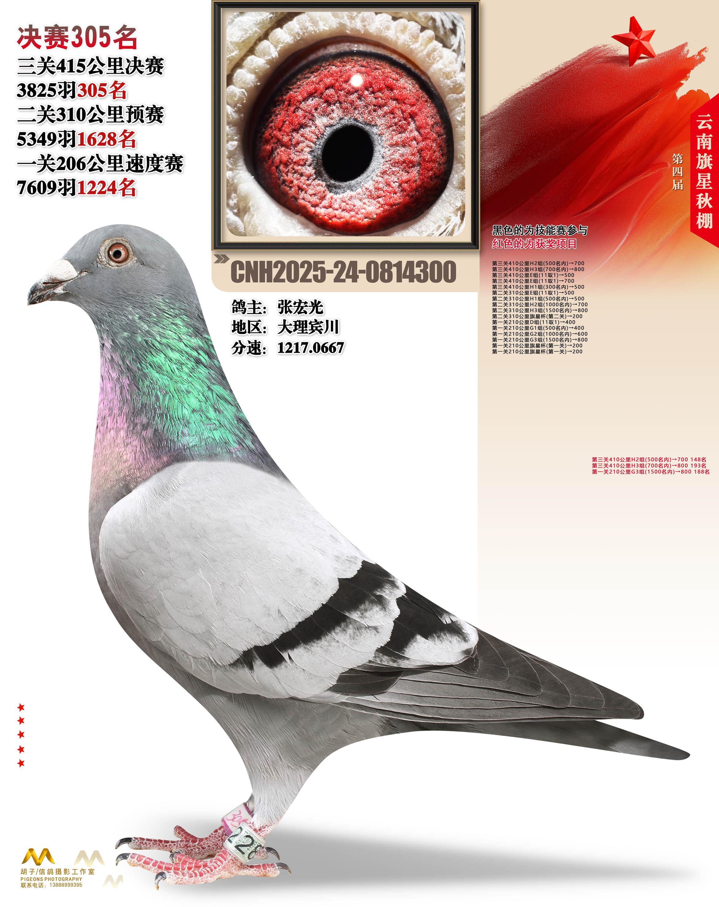 位置:云南大理旗星赛鸽中心2025获奖鸽展示\决赛305名