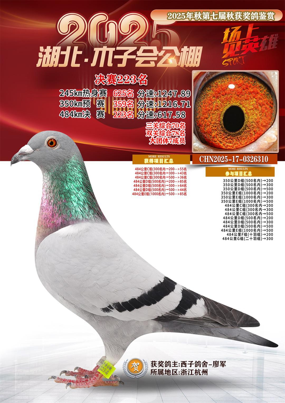 位置:湖北省木子会公棚2025获奖鸽展示\决赛223名