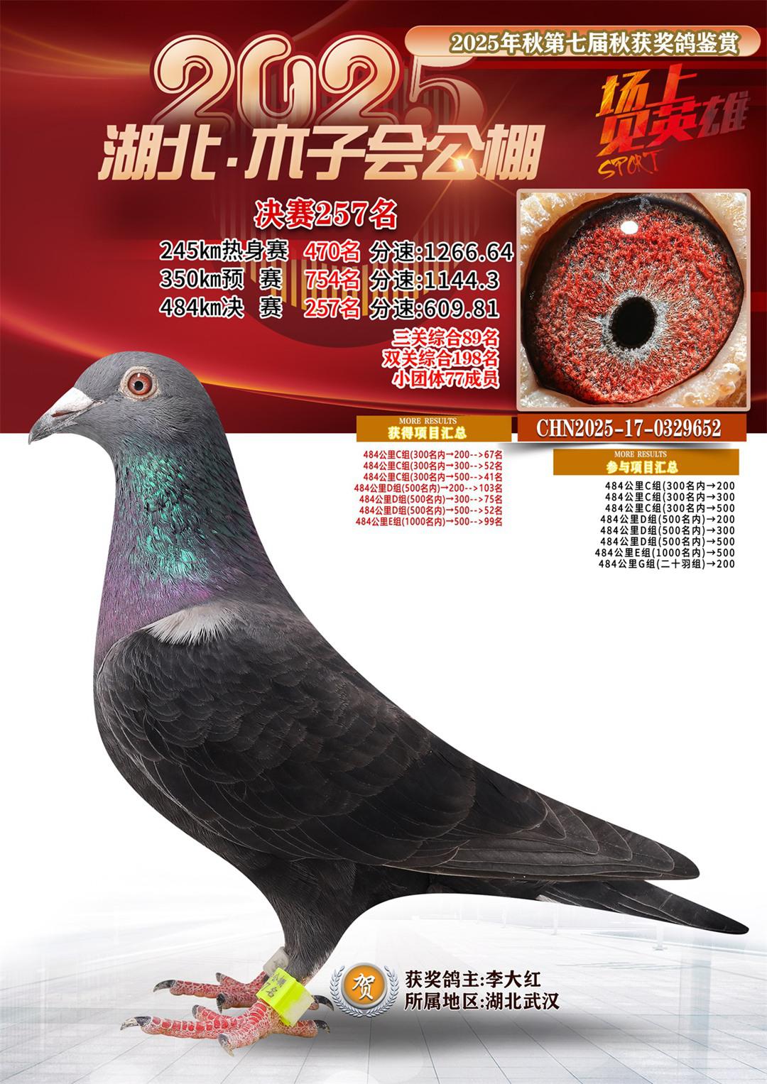 位置:湖北省木子会公棚2025获奖鸽展示\决赛257名