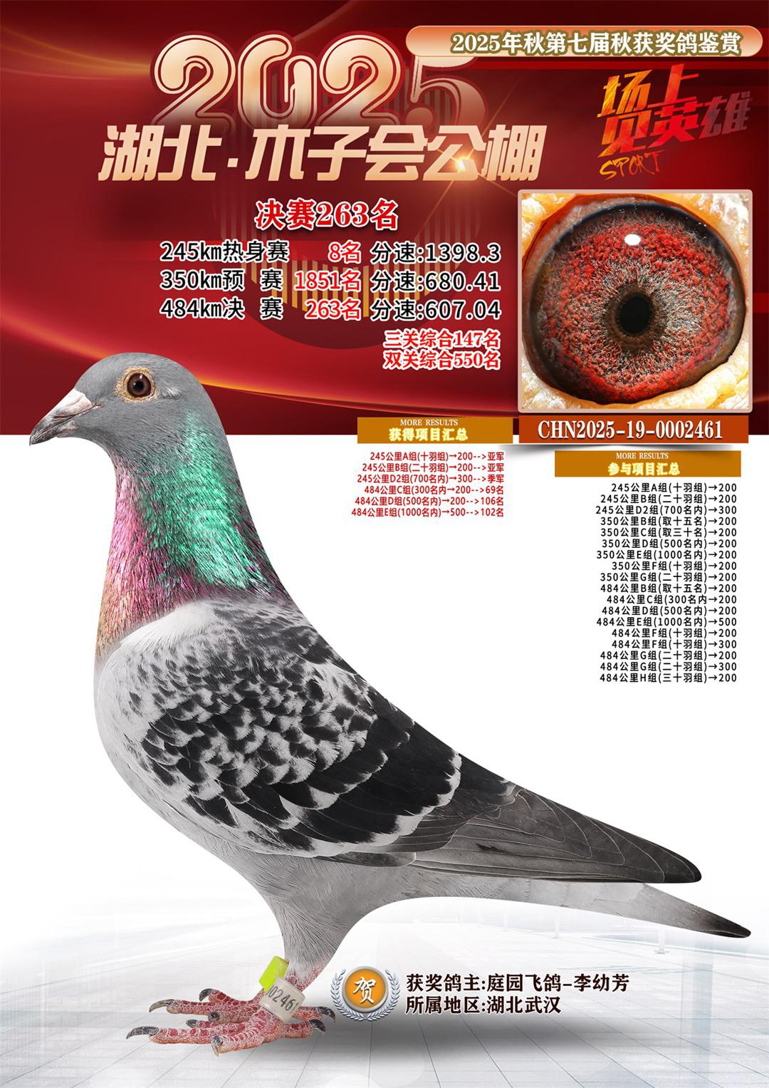 位置:湖北省木子会公棚2025获奖鸽展示\决赛263名