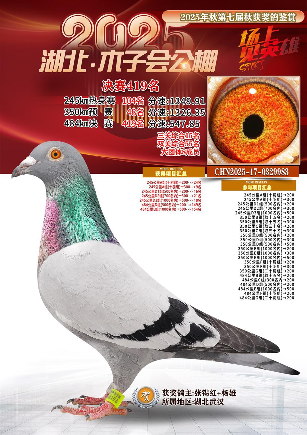 位置:湖北省木子会公棚2025获奖鸽展示\决赛419名