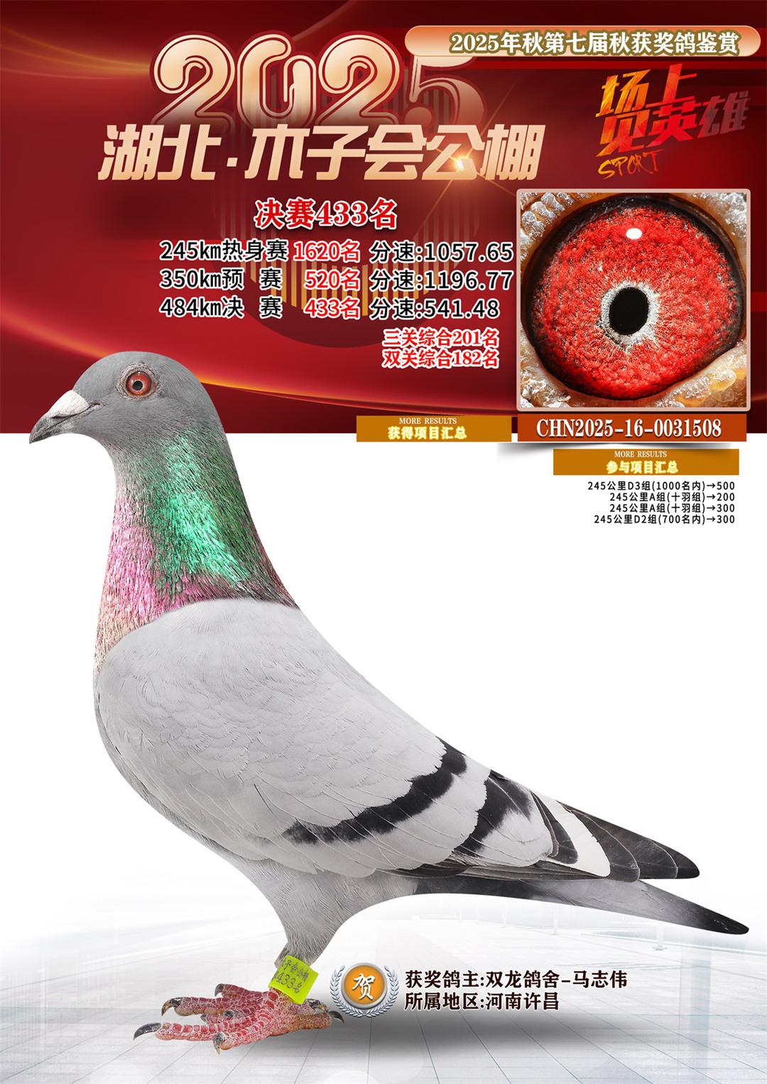 位置:湖北省木子会公棚2025获奖鸽展示\决赛433名