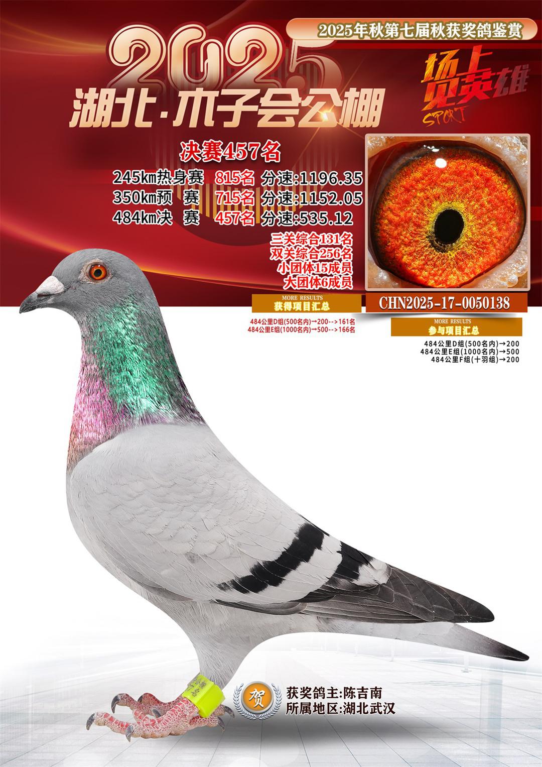 位置:湖北省木子会公棚2025获奖鸽展示\决赛457名